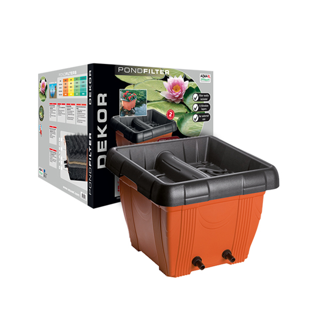 A DEKOR szűrő egy külső szűrő a víz szűrésére egy tóban vagy tóban, amely nemcsak a víz tisztaságáról gondoskodik, hanem egy kerti díszítést is készít. A burkolatok mélyedésével dekoratív növényeket helyeznek be azokba. Helyezhető a tó szélére vagy a vízesés kiáramlására. A DEKOR szűrőket 5000 literes tartályokhoz ajánljuk. A szűrőkhöz ajánlott AQUAEL AQUAJET PFN 3500 szivattyúk használata.