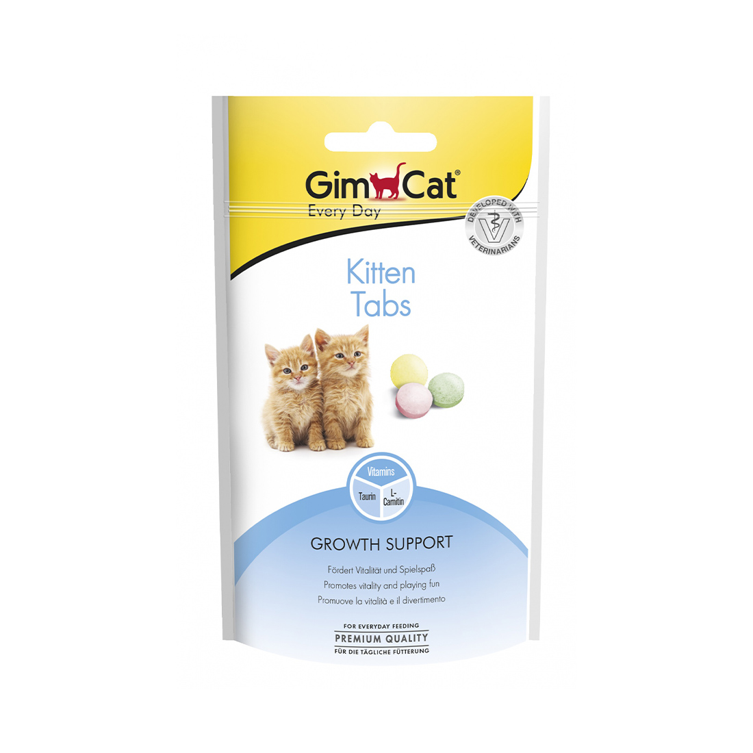 – A GimCat Kitten Tabs az esszenciális vitaminok és a természetes kalcium kombinációja révén optimális termék a macskababa számára.