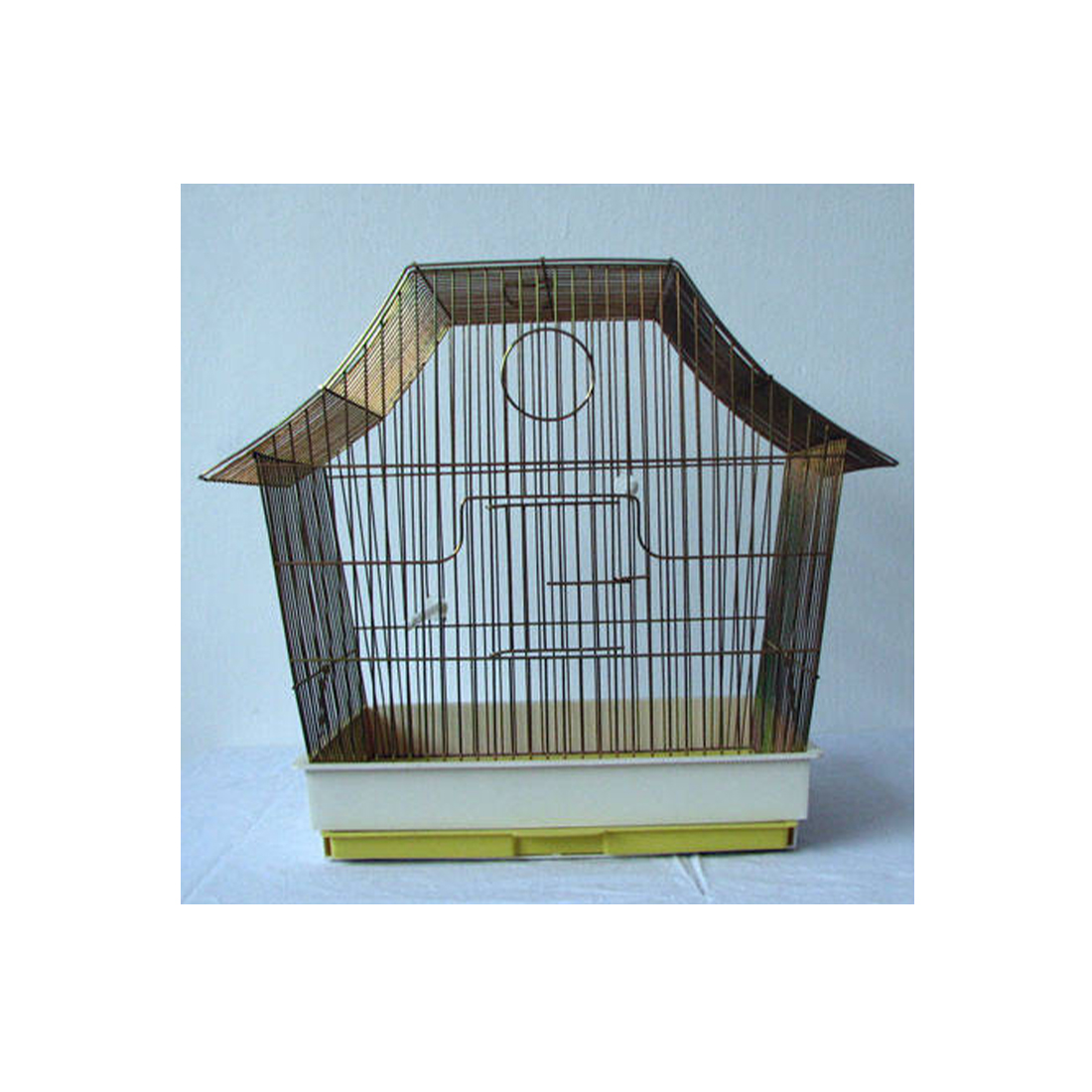 Színes műanyag tálcás, két ajtós, kihúzható „fiókos” madár kalitka.