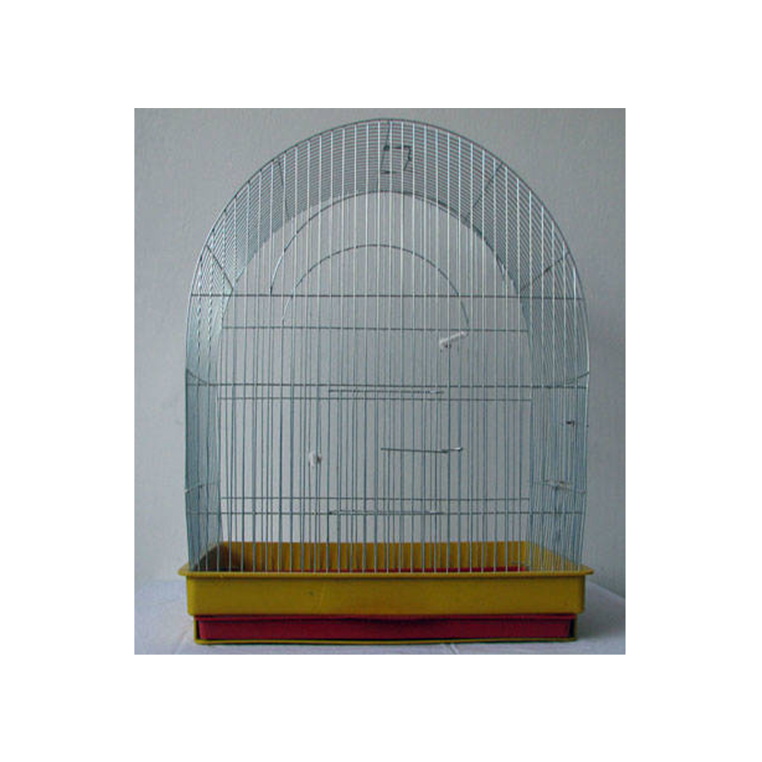 Színes műanyag tálcás, két ajtós, kihúzható „fiókos” madár kalitka.